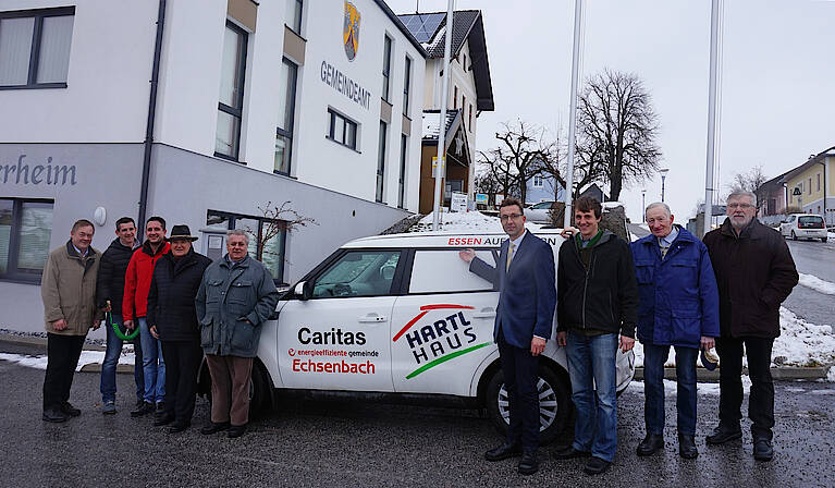 Mit EUR 3.000,- unterstützt HARTL HAUS in einer gemeinsamen Aktion mit dem Autohaus Gatterer, der Marktgemeinde Echsenbach und der Caritas den Autoankauf für „Essen auf Rädern“.