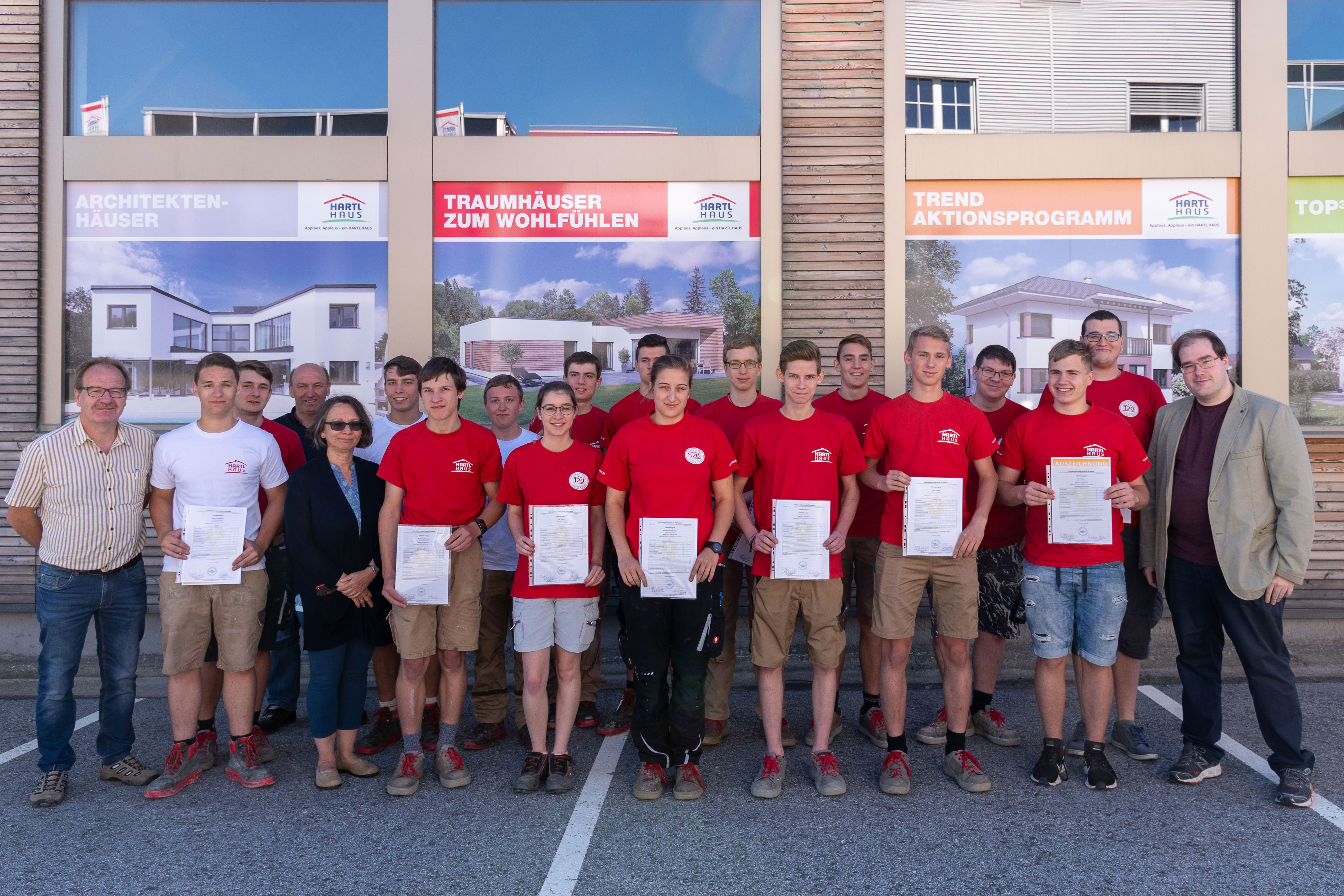 16 HARTL HAUS-Lehrlinge schließen ihr Berufsschuljahr erfolgreich ab und dürfen sich über gute Noten freuen.