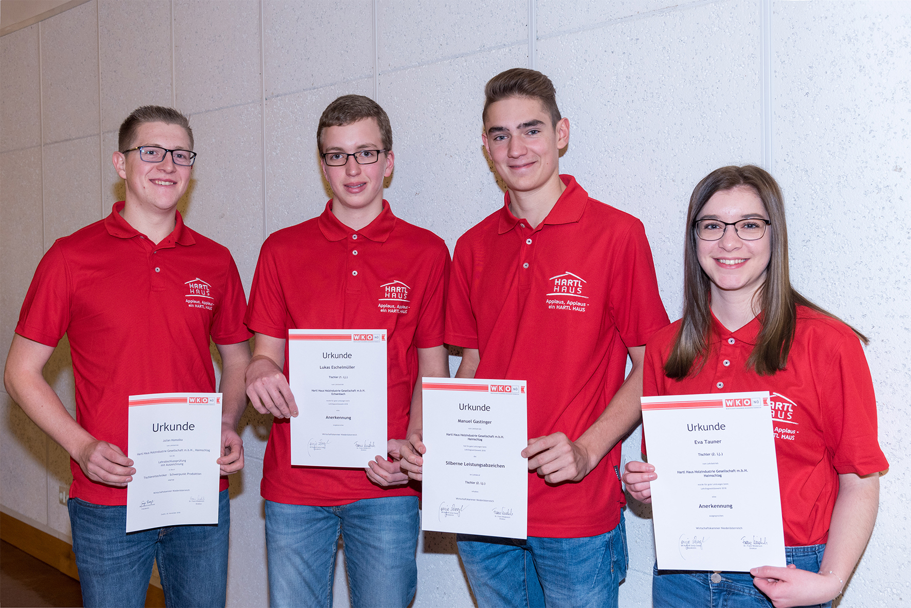 Mit vier Auszeichnungen war HARTL HAUS bei der Ehrung der bezirksbesten Lehrlinge der Wirtschaftskammer Niederösterreich in Zwettl vertreten.