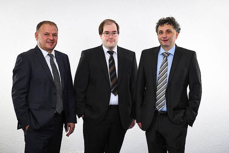 Text zu Bild: KR Dir. Roland und Dir. Peter Suter verabschieden sich mit Jahreswechsel aus der operativen Geschäftsleitung. Die nächste Generation mit Dir. Yves Suter übernimmt die Geschäftsführung zum Jahreswechsel. Unterstützt wird dieser durch Prok. Andreas Talamas und Prok. BM Erwin Nechwatal, die beratend zur Seite stehen.