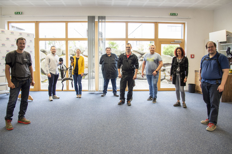 v.l.n.r. Horst Zach (Bautischlerei), Ing. Wolfgang M. Baumann (Geschäftsführer awb GmbH), DI Sonja Ableitinger (Forschung & Entwicklung), Ing. Andreas Nichtawitz (Arbeitssicherheit), Peter Pfeiffer (Bautischlerei), Harald Höbarth (Montage), Dr. Waltraud Höfinger (Arbeitsmedizinerin) und Dir. Yves Suter (Geschäftsführung)
