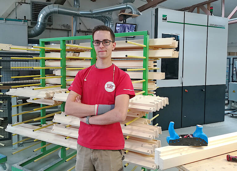 Text zu Bild 2: Jung-Tischlermeister Dennis Schön ist Teil des Teams der HARTL HAUS-Fensterproduktion.