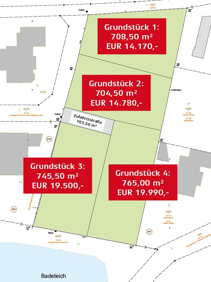 Hinweis: Im Kaufpreis nicht enthalten sind Gebühren für Aufschließung, Netz NÖ-Anschluss, Kanal- und Wasseranschluss, Grunderwerbssteuer, Eintragung sowie die Vertragserrichtung.