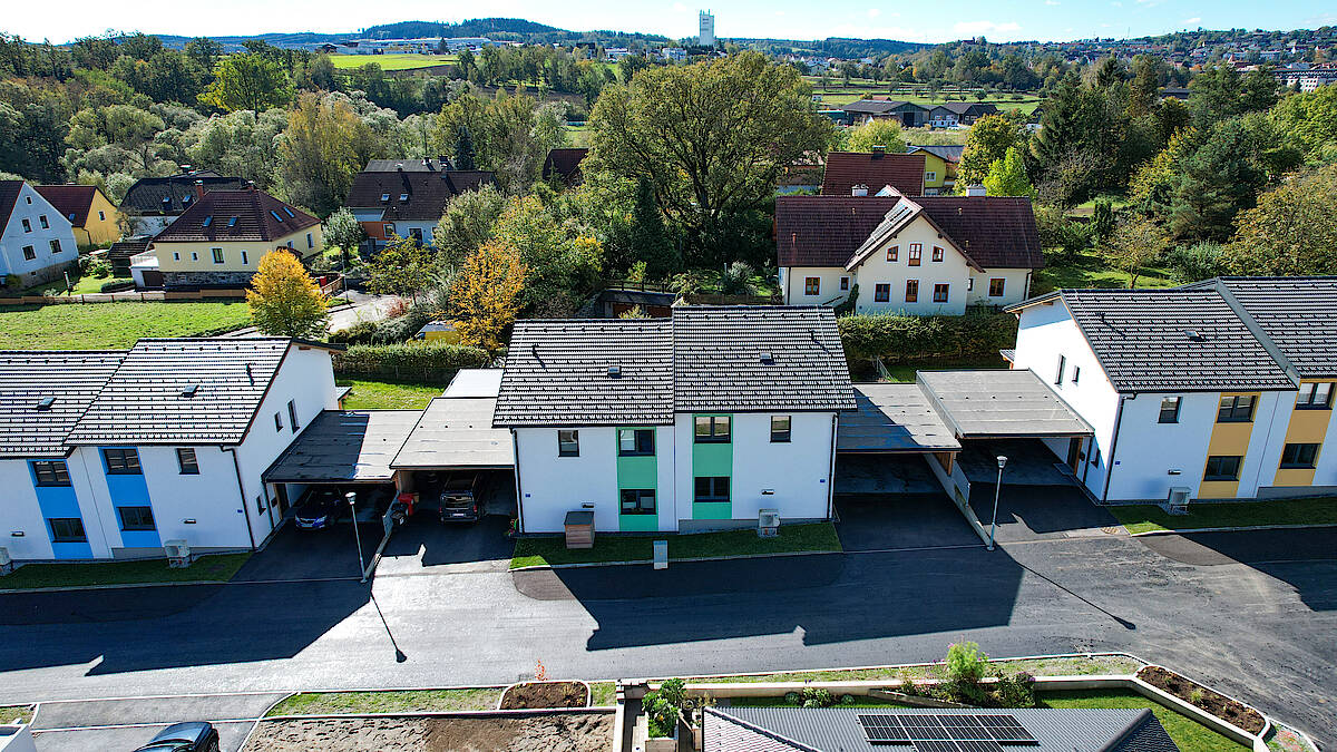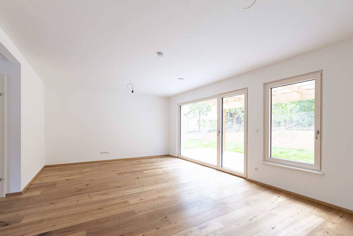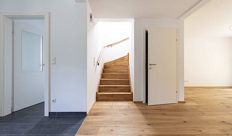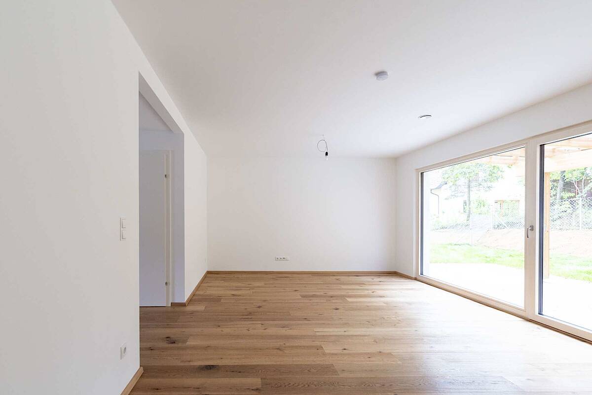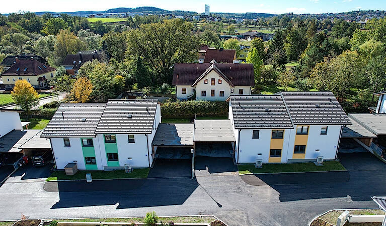 Die Doppelhaushälften verfügen jeweils über einen Doppelcarport und großzügige Grundstücksflächen zwischen 304 und 542 m². Mit einer Nettogrundrissfläche von 138,04 m² in ökologischer Niedrigstenergiebauweise – ausgeführt in bewährter HARTL HAUS Qualität – bieten sie modernen Wohnkomfort. Hochwertige Details wie die Eiche-Massivholztreppe sowie Holz-Alu-Eingangstüren und Fenster mit 3-Scheibenverglasung aus der hauseigenen Tischlerei stehen für Langlebigkeit und Wertbeständigkeit. Für ein angenehmes Raumklima sorgen die Luft-Wasser-Wärmepumpe mit Fußbodenheizung und Kühlfunktion sowie die kontrollierte Wohnraumlüftung. Abgerundet wird das Wohnkonzept durch den südseitigen Garten mit Terrasse und einen großzügigen Geräteraum.