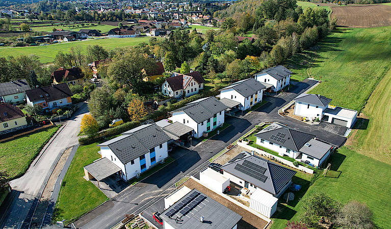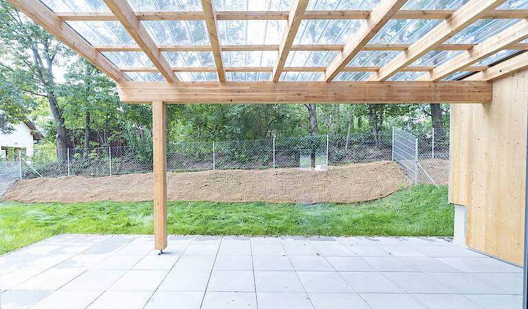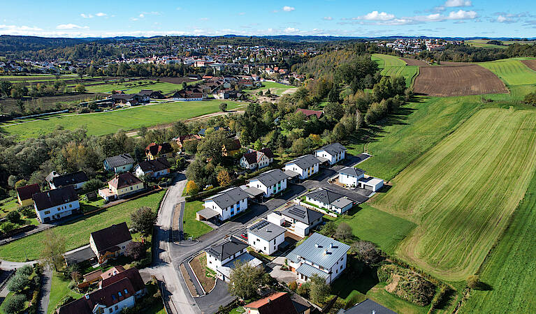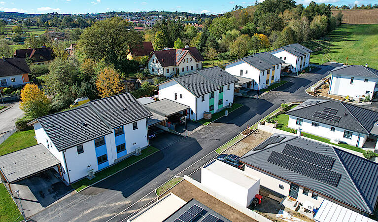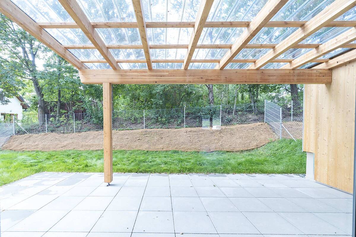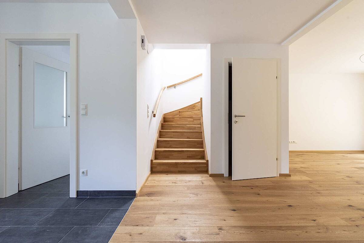 Die Doppelhaushälften verfügen jeweils über einen Doppelcarport und großzügige Grundstücksflächen zwischen 304 und 542 m². Mit einer Nettogrundrissfläche von 138,04 m² in ökologischer Niedrigstenergiebauweise – ausgeführt in bewährter HARTL HAUS Qualität – bieten sie modernen Wohnkomfort. Hochwertige Details wie die Eiche-Massivholztreppe sowie Holz-Alu-Eingangstüren und Fenster mit 3-Scheibenverglasung aus der hauseigenen Tischlerei stehen für Langlebigkeit und Wertbeständigkeit. Für ein angenehmes Raumklima sorgen die Luft-Wasser-Wärmepumpe mit Fußbodenheizung und Kühlfunktion sowie die kontrollierte Wohnraumlüftung. Abgerundet wird das Wohnkonzept durch den südseitigen Garten mit Terrasse und einen großzügigen Geräteraum.