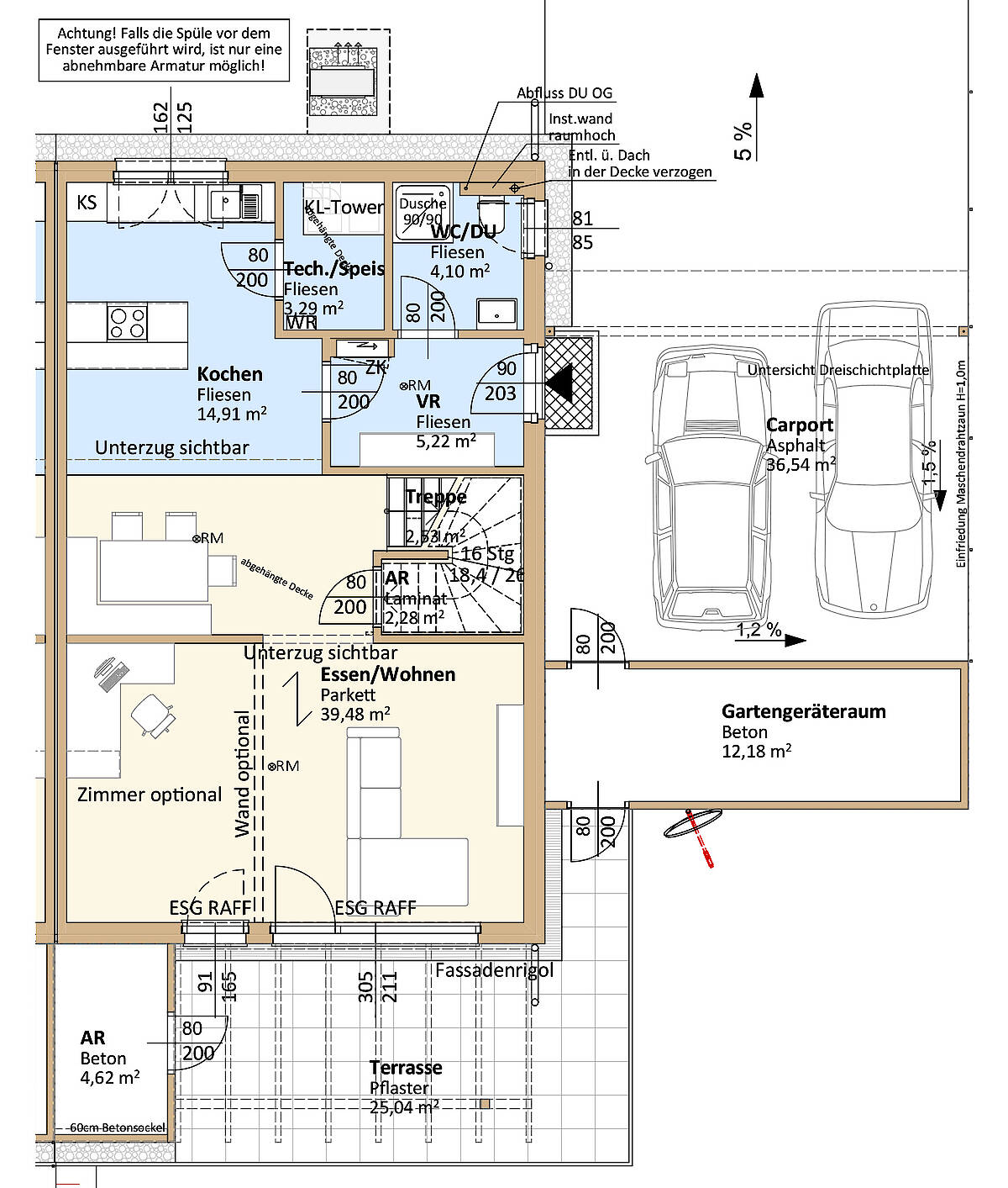 Zur individuellen Erweiterung stehen verschiedene Optionen zur Wahl: Eine PV-Anlage mit 2,25 oder 4,5 kWpeak sorgt für nachhaltige Energiegewinnung, Raffstores ermöglichen eine komfortable Abschattung. Zusätzlich sind eine Schallschutzhaube für die Wärmepumpe sowie eine Sat-Anlage verfügbar. So lässt sich jedes Zuhause nach persönlichen Wünschen optimal anpassen.